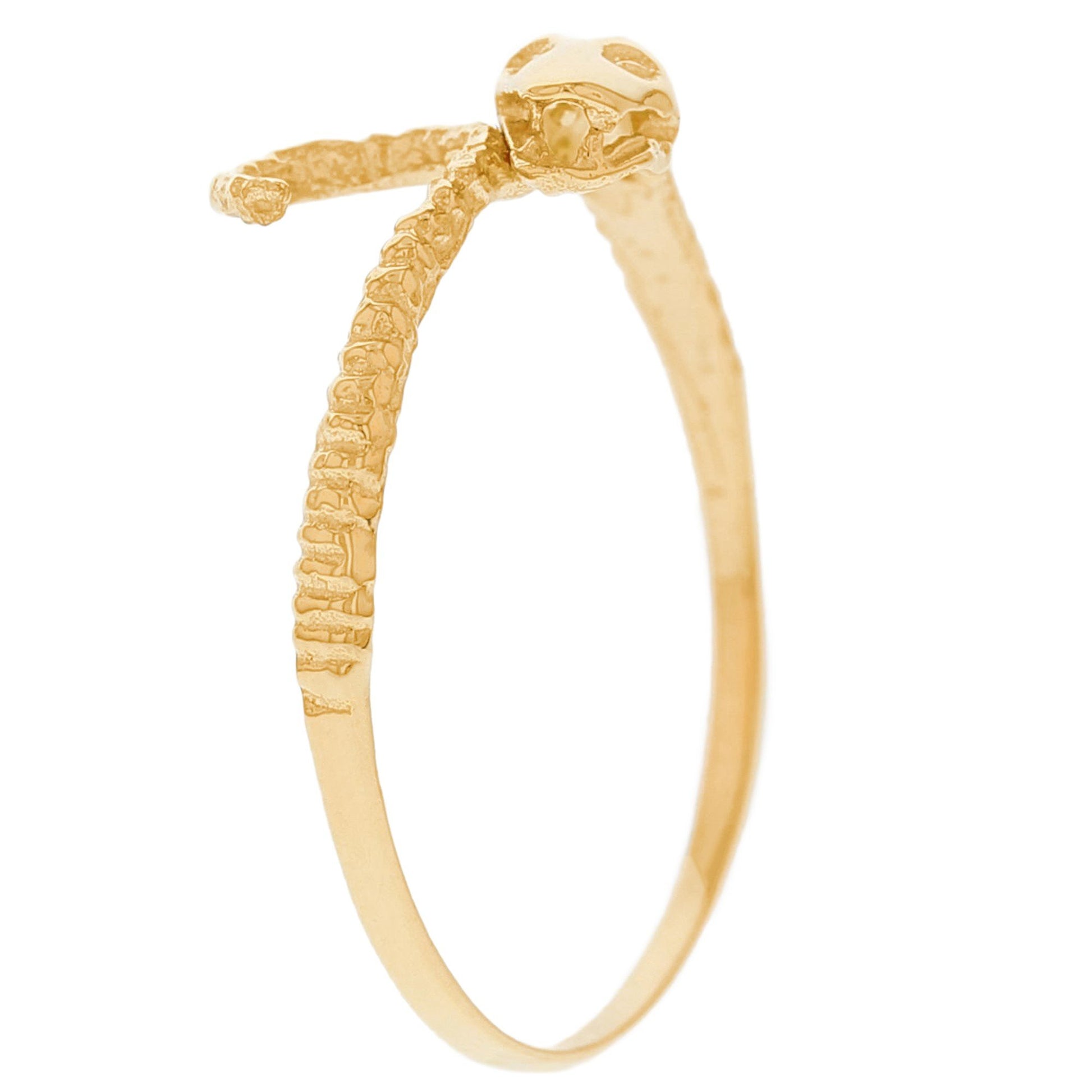 An impressive snake is capture in this wonderful thin band ring design. This ring makes a perfect addition to any collection and a great conversation piece wherever you go! Only fine 10k Yellow Gold is used to craft this stunning ring. Show that reptile lover your love for them with the gift of fine jewelry. Our rings are proudly handcrafted in our California factory.