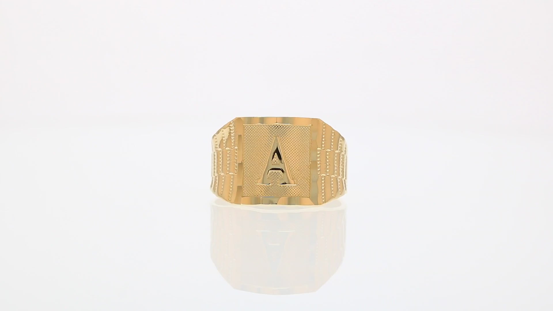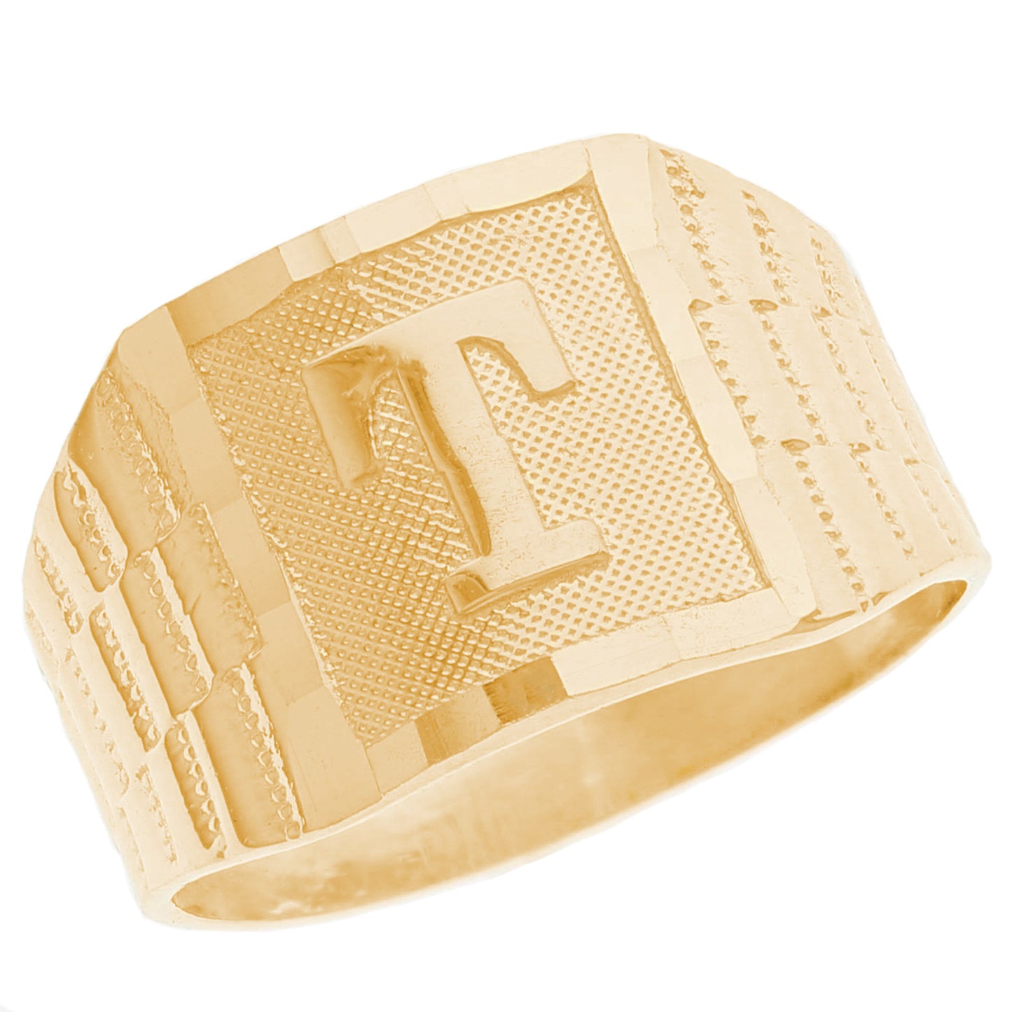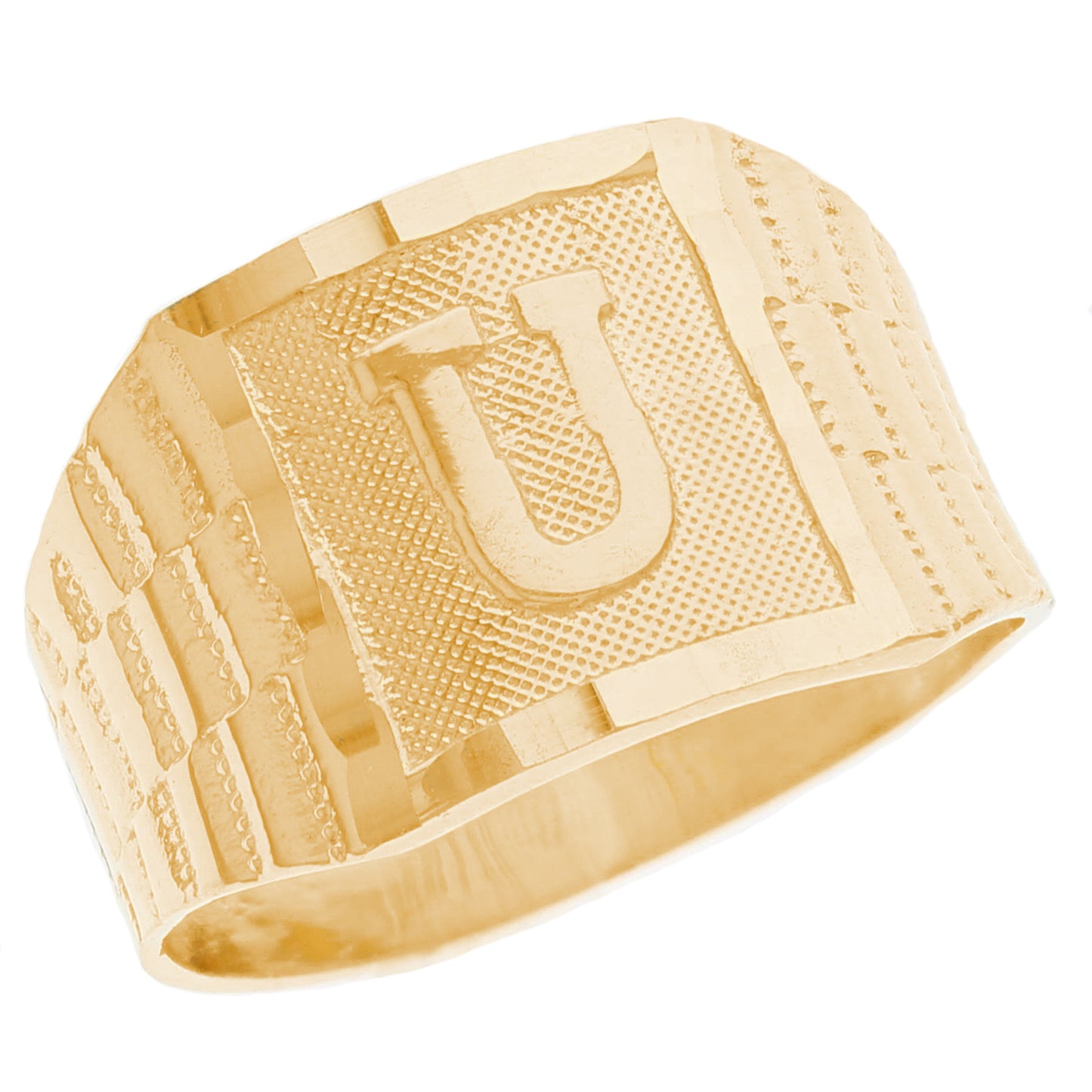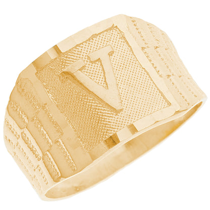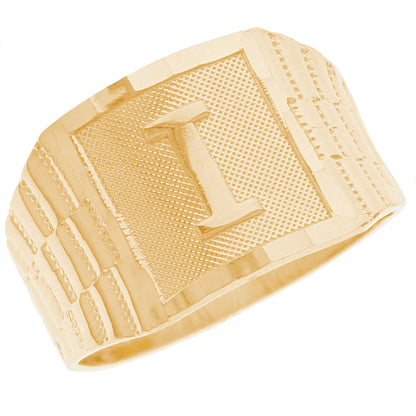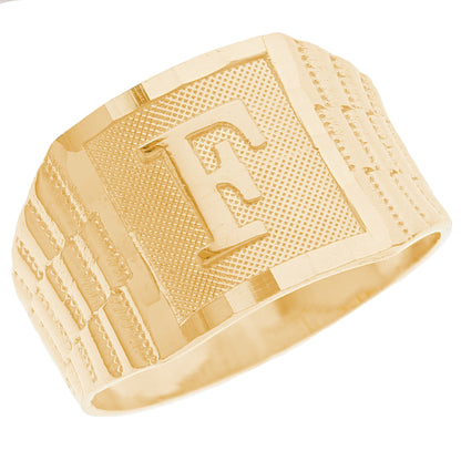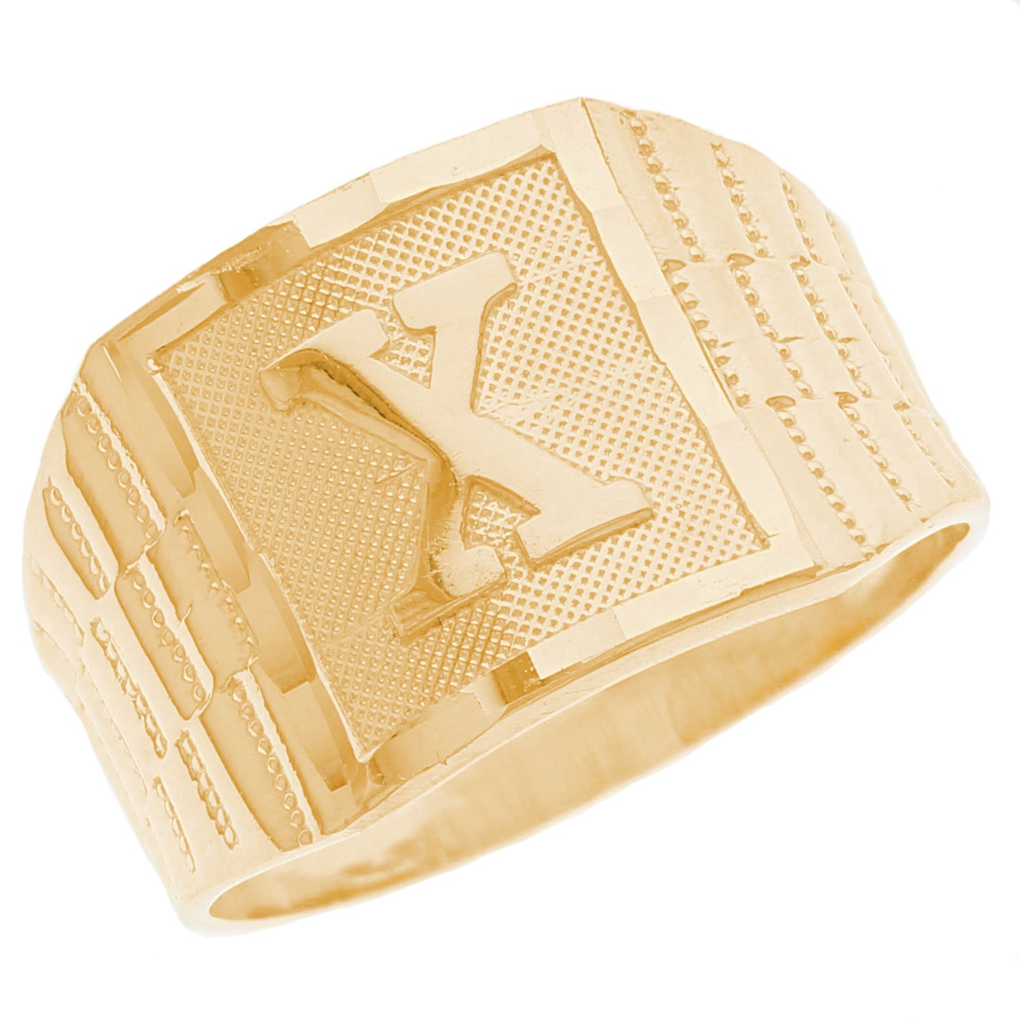 The 10k Yellow Gold Large A Mens Ring from emgeedi is a stylish and timeless piece that is perfect for everyday wear. Made in the USA at a California based factory, this ring is crafted from high-quality 10k Yellow Gold and features a bold initial A design.The shanks of the ring feature a classic and elegant watch band design that is sure to add to any collection. With no stones, this ring is perfect for those who prefer a minimalist and understated look. Whether worn on its own or stacked with other rings, this piece is sure to make a statement. Add a touch of personalized style to your wardrobe with the JackAni 10k Yellow Gold Large A Mens Ring.