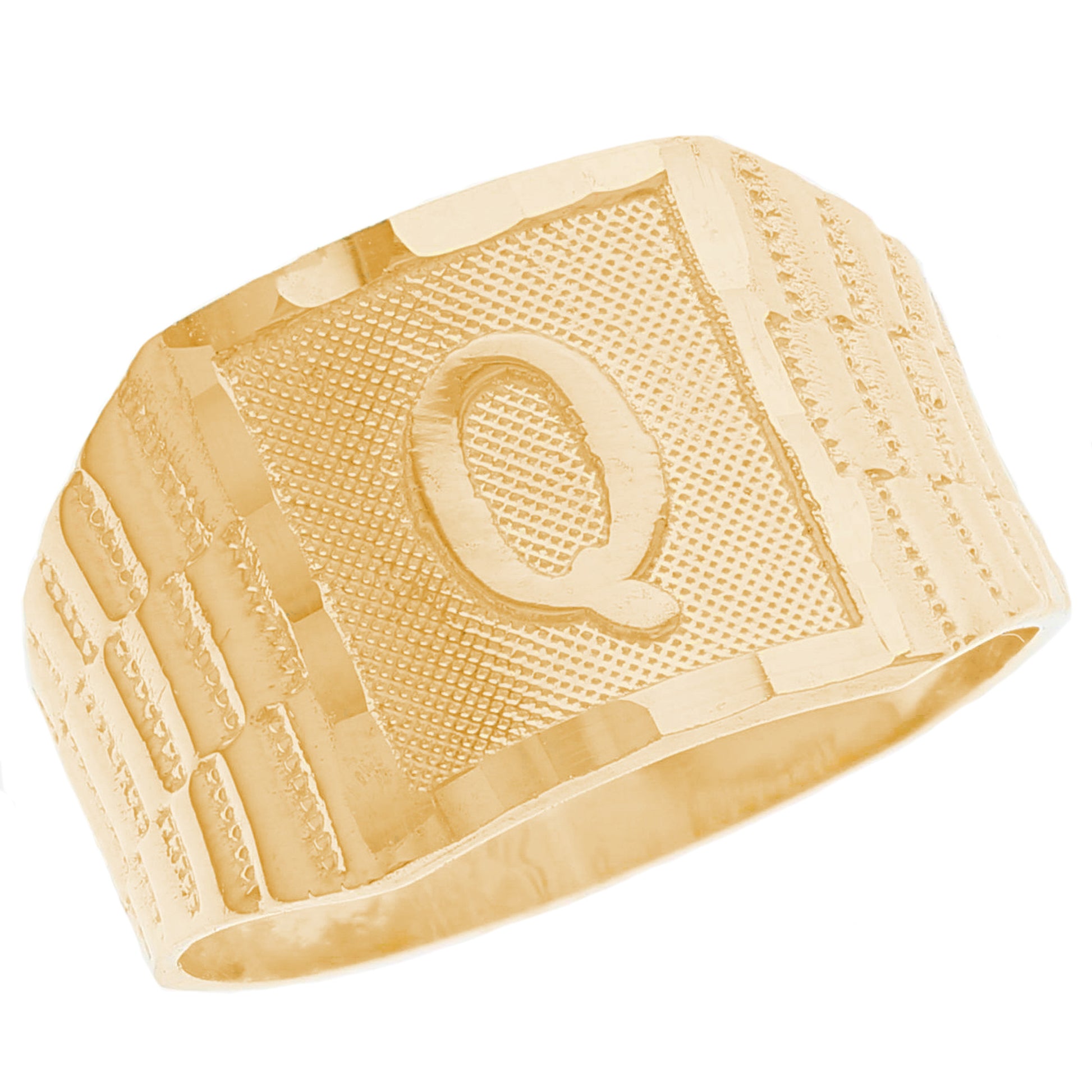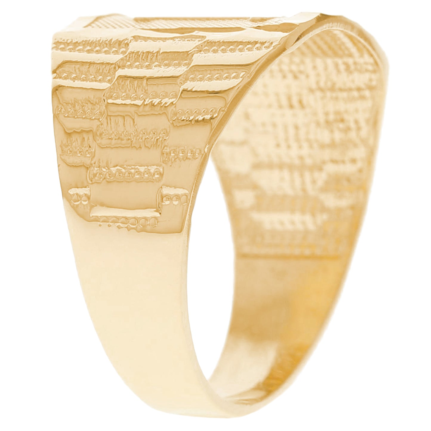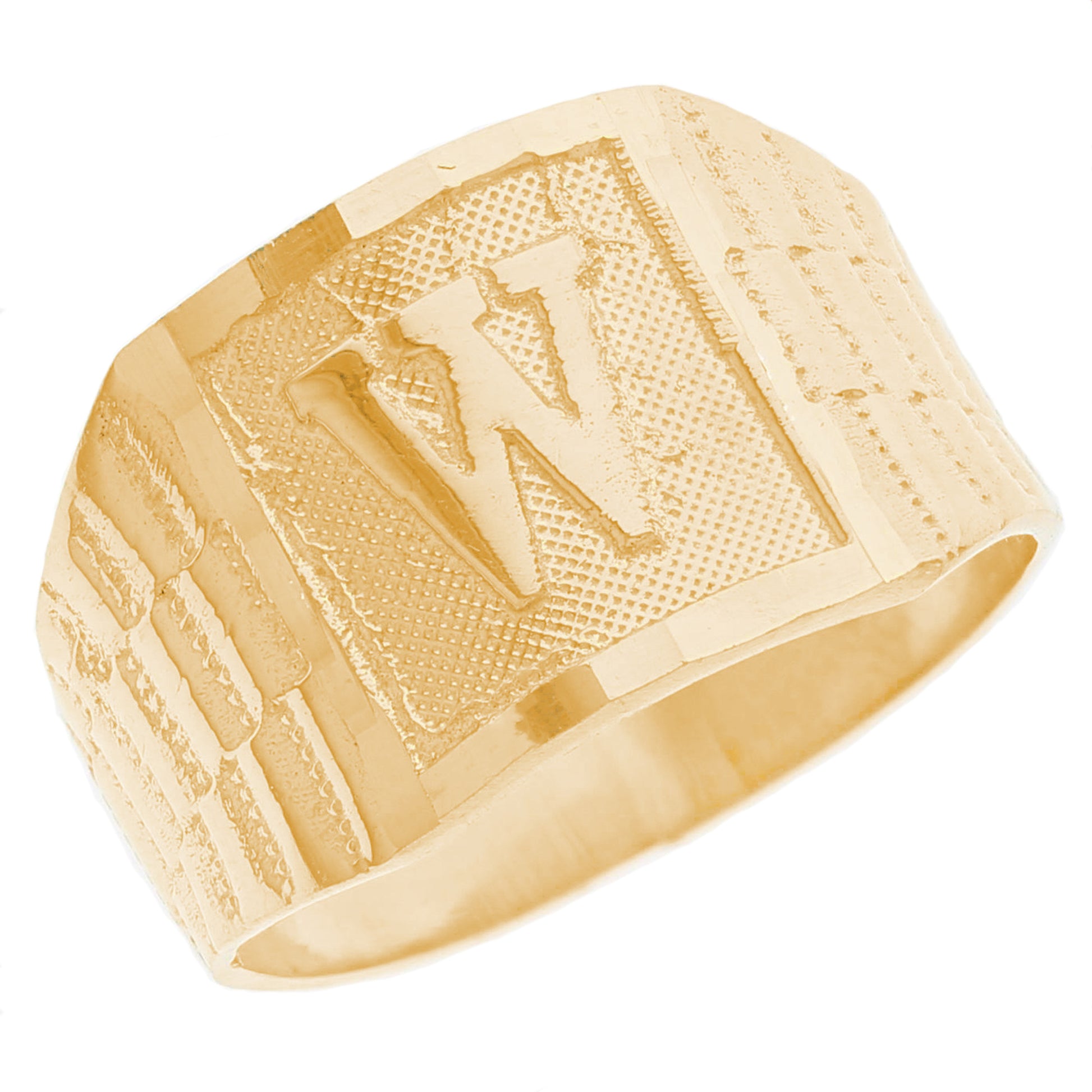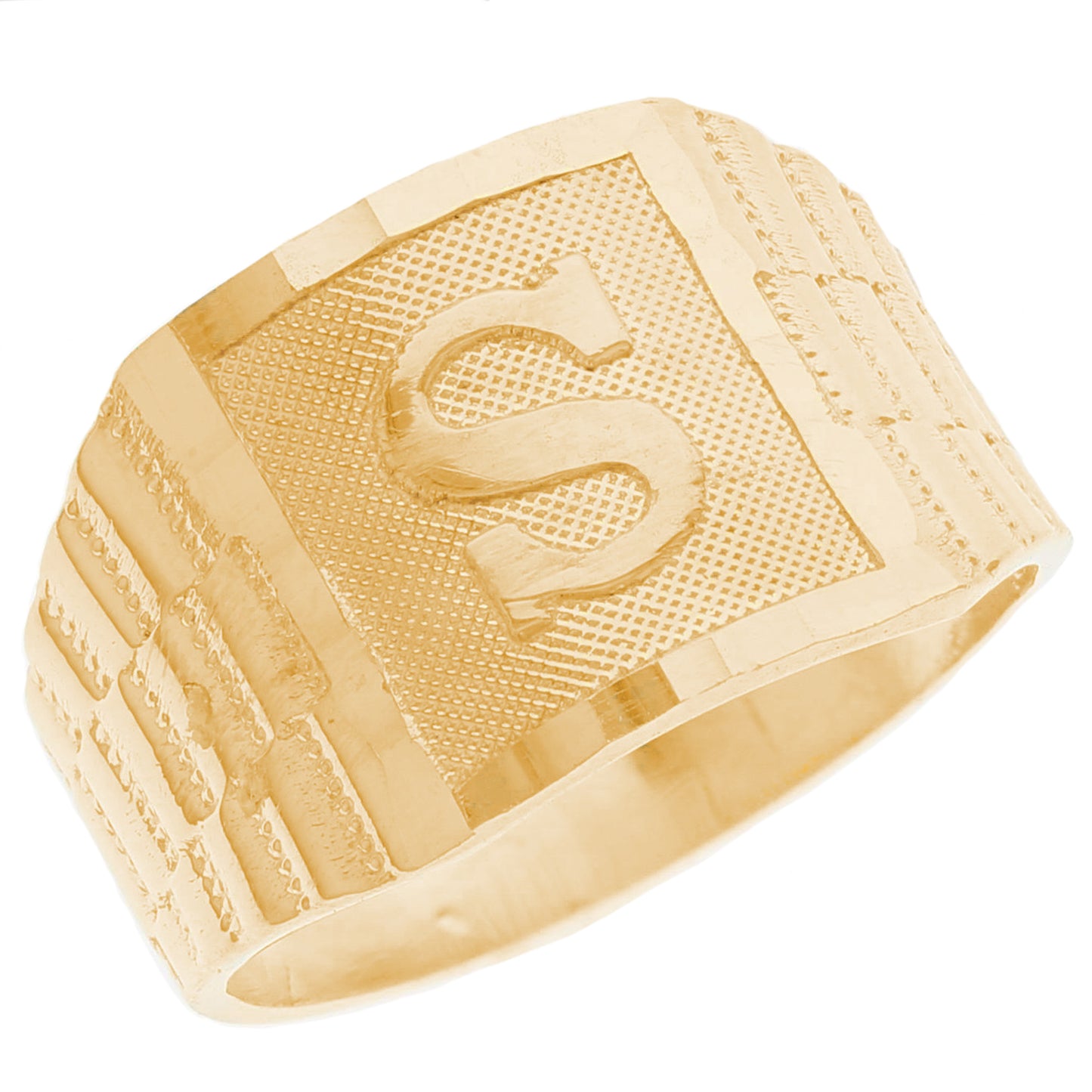 The 10k Yellow Gold Large A Mens Ring from emgeedi is a stylish and timeless piece that is perfect for everyday wear. Made in the USA at a California based factory, this ring is crafted from high-quality 10k Yellow Gold and features a bold initial A design.The shanks of the ring feature a classic and elegant watch band design that is sure to add to any collection. With no stones, this ring is perfect for those who prefer a minimalist and understated look. Whether worn on its own or stacked with other rings, this piece is sure to make a statement. Add a touch of personalized style to your wardrobe with the JackAni 10k Yellow Gold Large A Mens Ring.
