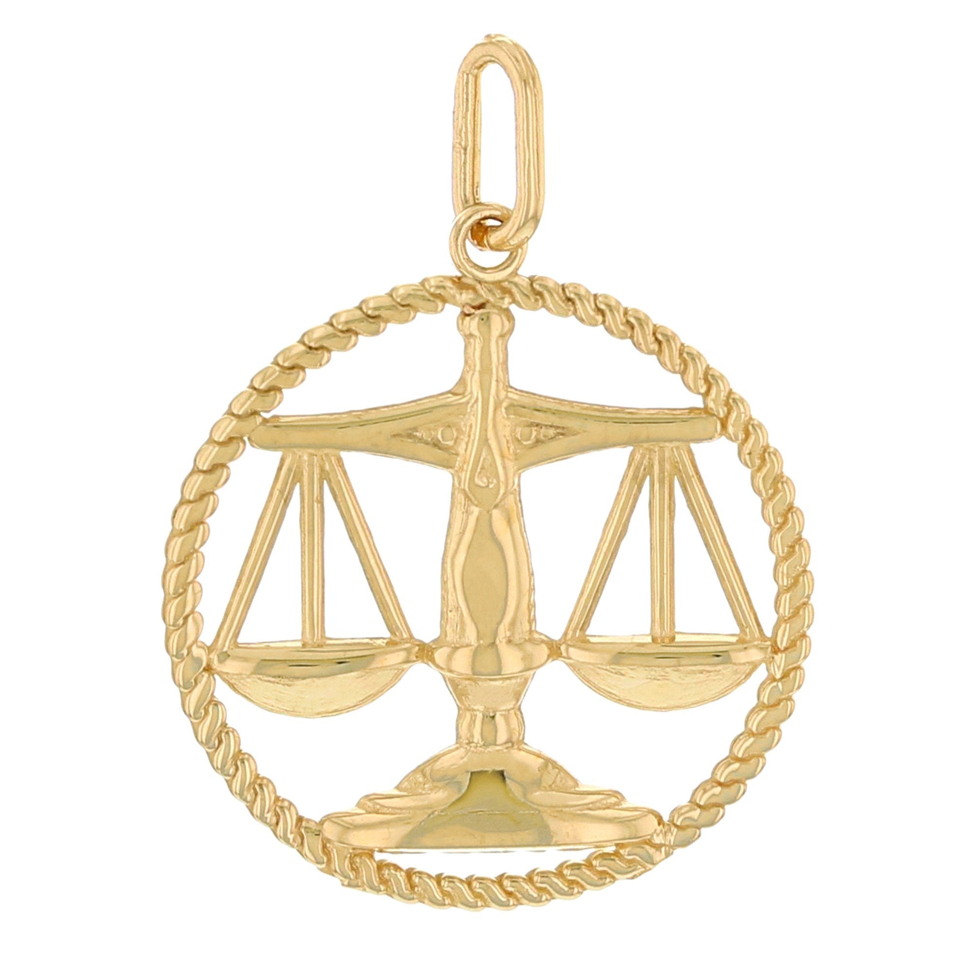 A glistening scale, the zodiac symbol for Libra, is perfectly set at the center of this petite real 10k Yellow Gold pendant and is framed by a twisted rope design. Libra is the zodiac sign for those born between September 23 - October 22. Libras are known for being diplomatic, graceful, peaceful, idealistic and hospitable. Our pendants are proudly handcrafted in our California factory. Please note that this pendant does not come with a chain.