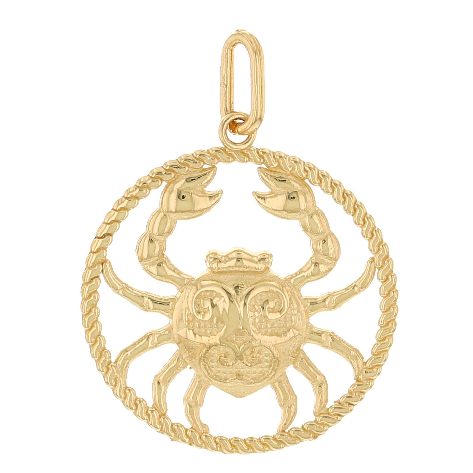 An eye-catching crab, the zodiac symbol for Cancer, is perfectly set at the center of this petite real 14k Yellow Gold pendant and is framed by a twisted rope design. Cancer is the zodiac sign for those born between June 21 - July 22. Cancers are known for being loyal, dependable, caring, adaptable and responsive. Our pendants are proudly handcrafted in our California factory. Please note that this pendant does not come with a chain.