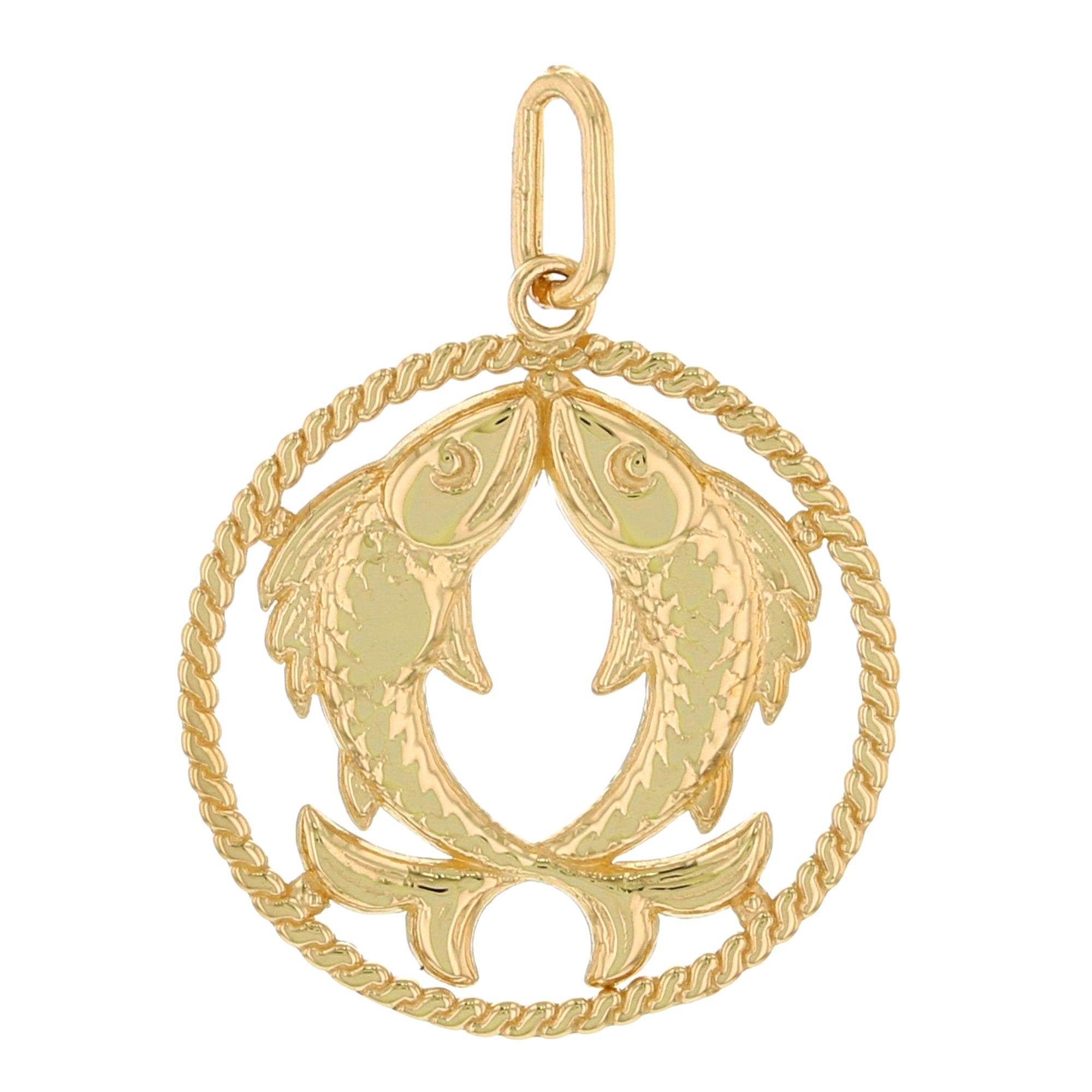 Crafted entirely from fine 14k Yellow Gold, this pendant makes the perfect gift for the Pisces in your life. Majestic fish intertwine at the center of this pendant and is framed by a twisted rope design. Pisces is the zodiac sign for those born between February 19 - March 20. Pisces are known for being compassionate, adaptable, accepting, devoted and imaginative. Our pendants are proudly handcrafted in our California factory. Please note that this pendant does not come with a chain.